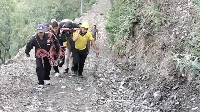 Mussoorie, 29 May: Late last night, a car went out of control and fell into a deep ditch near Galogi Power House on the Mussoorie-Dehradun Road. Two of the three people in the car died on the spot. One person saved his life by jumping out of the car. As soon as the incident was reported, Mussoorie Police, Fire Service, SDRF, 108 Ambulance reached the spot and a rescue operation was started under the leadership of CO, Mussoorie, Manoj Aswal.