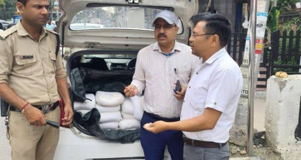 According to the information, district FDA officers Manish Sayana and Ramesh Singh, along with police officer Pramod Bhandari, in-charge of Niranjanpur Mandi police outpost, were checking vehicles in the Bhandari Bagh area. During this, they noticed a white Hyundai Eon car in suspicious condition.