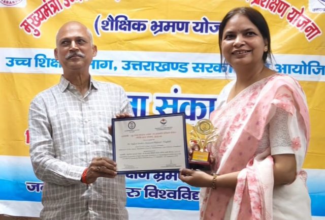 As a participant in the educational tour, Pallavi Mishra, working as Assistant Professor in the Department of English, SDM Govt PG College, Doiwala, expressed her gratitude towards the Secretary, Higher Education, Government of Uttarakhand, for providing her the opportunity to visit the premiere institute and, also, to the Chief Minister & Minister of Higher Education for envisioning the scheme. She said, “The premier institutes can offer the best of minds if they are focused towards imparting knowledge to the youths of the country rather than moving out to foreign countries. The maintenance and upkeep of these institutes also clamour for attention. The profound knowledge base can be accessed by keeping these visits both–sided i.e., the Professors can be invited from time to time to visit far–off colleges of Uttarakhand that would prove to be helpful.”