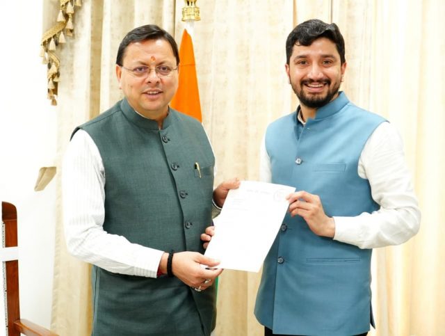 Mussoorie, 27 Aug: BJP Yuva Morcha Legal Co-convenor Advocate Aryan Dev Uniyal met Chief Minister Pushkar Singh Dhami on Wednesday and raised the problems being faced in Mussoorie. He submitted a detailed 5-point memorandum to the Chief Minister, outlining the serious challenges confronting the city.