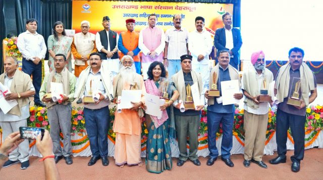 Dehradun, 30 June: Chief Minister Pushkar Singh Dhami honoured nine litterateurs with the Uttarakhand Gaurav Samman on Friday at the Sahitya Gaurav Samman ceremony and Lok Bhasha Sammelan organized by Uttarakhand Bhasha Sansthan in the IRDT auditorium located at Survey Chowk.