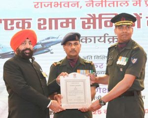 NAINITAL, 11 Jun: Lt Gen Gurmit Singh (Retd) participated in the program “An Evening Dedicated to Soldiers” organized by the Department of Sainik Welfare at Raj Bhavan, Nainital, on Wednesday. On this occasion, the Governor honored recipients of gallantry awards and veterans for their commendable service. Appreciation letters were also presented to personnel and officers of the paramilitary forces.