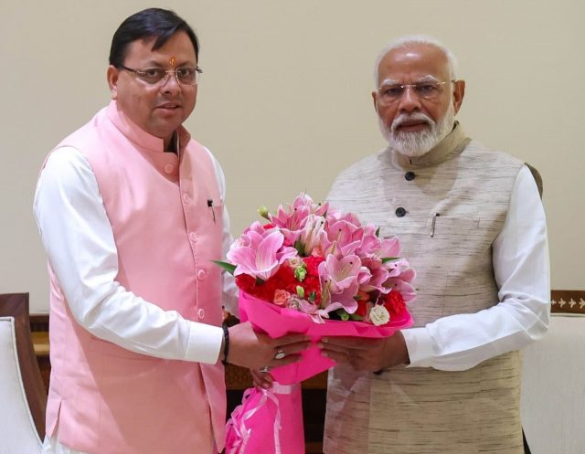 New Delhi, 25 Jun: Chief Minister Pushkar Singh Dhami met Prime Minister Narendra Modi here, today, and congratulated him on assuming charge as Prime Minister of the country for the third consecutive term. Dhami also expressed confidence that under the able leadership of Modi, the country will achieve new dimensions of overall development and set new records of success.