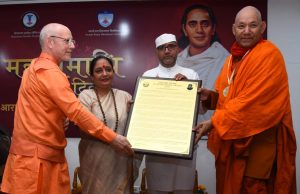 (Swami Rama Humanitarian Award conferred upon Mahabodhi International Meditation Centre, Leh-Ladakh. The award was received by Bhikkhu Sanghasena on behalf of the centre.)