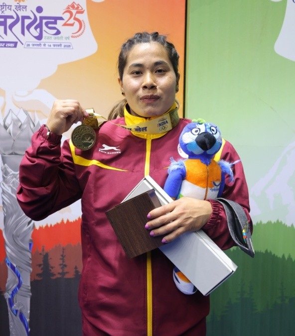 Dehradun, 31 Jan: Manipur’s star weightlifter S Bindyarani Devi performed brilliantly at the ongoing National Games here, today, winning the gold medal in the women’s 55kg category and creating history by setting a new national record in the snatch category.