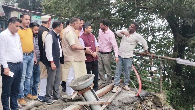 Mussoorie, 29 Aug: Cabinet Minister Ganesh Joshi reached here, today, and inspected the damage caused by the collapse of the embankment near the Picture Palace bus stand and the main road leading to the damaged Landour market due to the rains in the past few days.