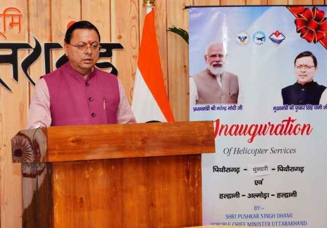 Dehradun, 1 Oct: Chief Minister Pushkar Singh Dhami on Wednesday virtually inaugurated the Pithoragarh-Munsyari-Pithoragarh and Haldwani-Almora-Haldwani helicopter services from his official residence, here, under the Regional Connectivity Scheme (UDAN). He said that the launch of these air services would greatly facilitate the movement of citizens living in remote regions of the state.