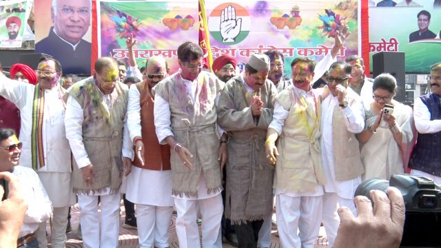 Although the festival of Holi is still a week away, celebrations have begun across the country, and the Congress marked the occasion with a show of solidarity and festive spirit. Senior leaders applied gulal to one another and conveyed a message of love, brotherhood and unity. The programme witnessed vibrant participation, with leaders and workers joining in traditional Holiyar songs rendered by folk singers from Garhwal, which transformed the party headquarters into a festive venue.