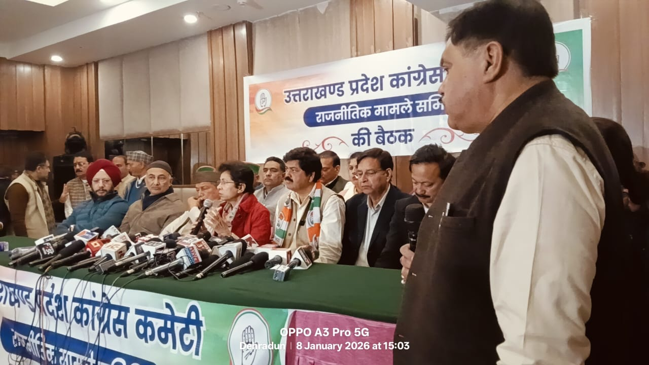 The press conference was moderated by former Media Chairman Rajiv Maharshi. Those present included State Congress President Ganesh Godiyal, former Chief Minister Harish Rawat, Election Campaign Committee Chairman Pritam Singh, Congress Working Committee (CWC) members Gurdeep Sappal and Karan Mahra, Co-in-charges Surendra Sharma and Manoj Yadav, MLA and National Secretary Qazi Nizamuddin, Election Management Committee Chairman Dr Harak Singh Rawat, and MLAs Mamta Rakesh, Manoj Tiwari and Vikram Singh Negi. Also present were former National Secretary Prakash Joshi, former Minister Navprabhat, former MPs Pradeep Tamta and Mahendra Singh Pal, Spokesperson Dr Pratima Singh and others.