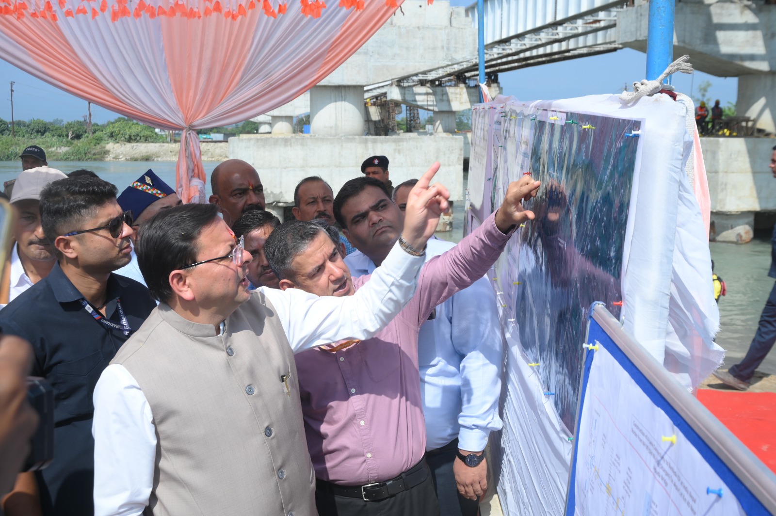 Champawat, 24 Oct: Chief Minister Pushkar Singh Dhami today conducted an on-site inspection of the upcoming modern Land Port project at Gudmi in Banbasa, Champawat district. The project is being developed by the Land Ports Authority of India (LPAI) at an estimated cost of nearly Rs 500 crores and is aimed at enhancing cooperation, trade, and development in the border areas between India and Nepal. On this occasion, Dhami noted that the Union Government, through LPAI, is fast-tracking this ambitious initiative in close coordination with the Uttarakhand Government.