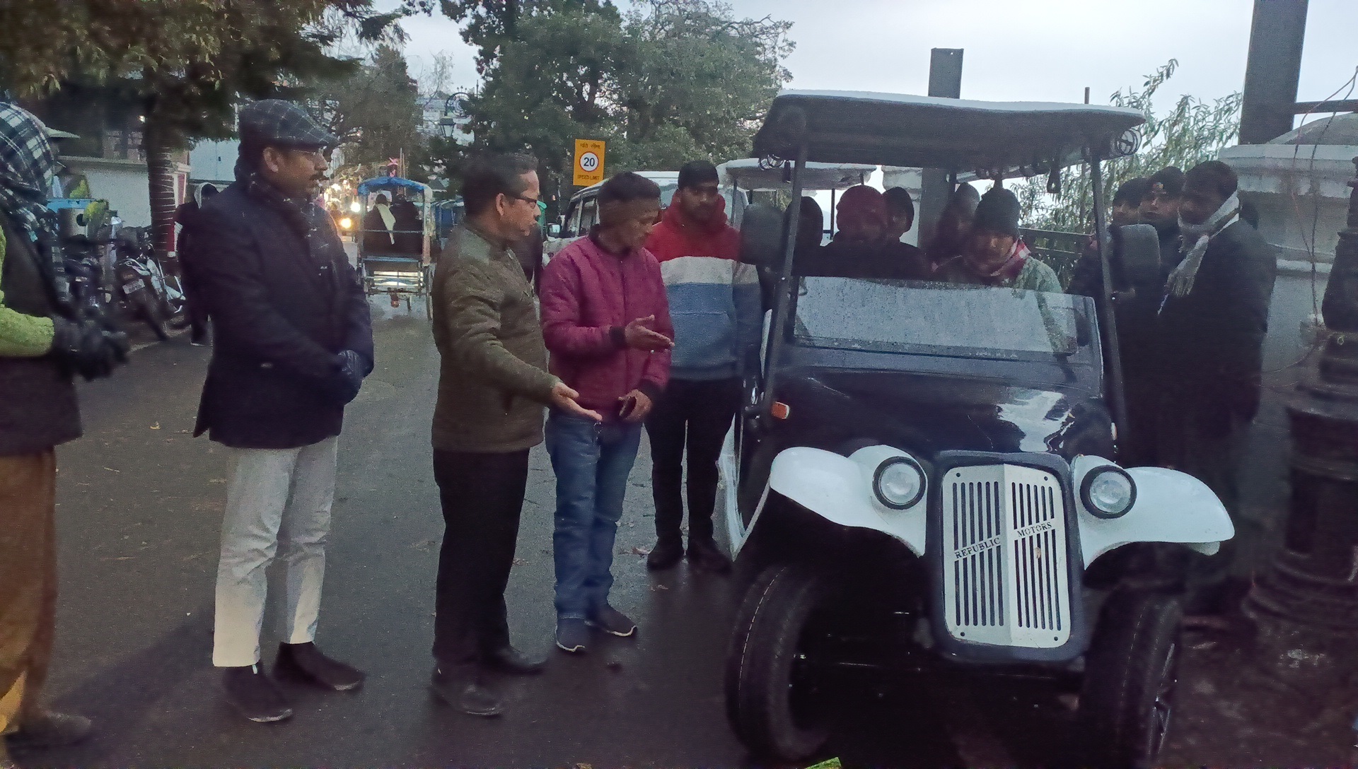 Mussoorie, 23 Dec: The golf cart service was officially launched, here, today. SDM, Sadar, Hari Giri flagged off the golf cart on Mall Road. The rickshaw drivers were particularly pleased with this development. In the first phase, four golf carts are being run on Mussoorie Mall Road.