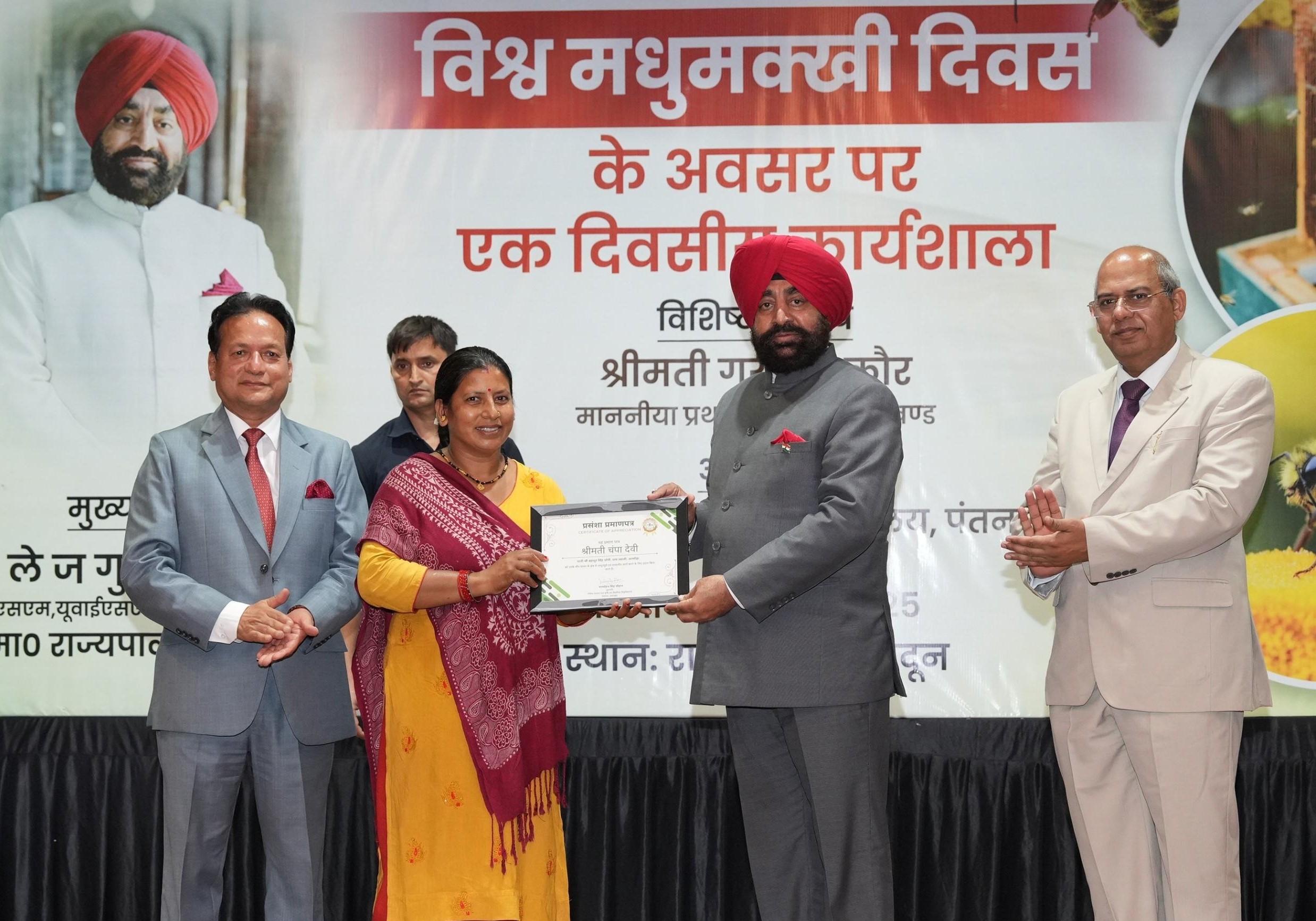 During the programme, the Governor honoured progressive beekeepers for their excellent work. The awardees included Hema Tiwari from Bageshwar; Bhavna Karki from Pithoragarh; Champa Devi from Almora; Rekha Chaudhary from Dehradun; Ujjwal Saini from Haridwar; and Shekhar Chandra Bhatt from Nainital.