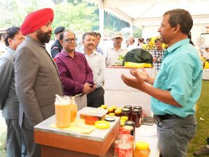 Dehradun, 20 May: On World Bee Day, today, a special event was organised at the Raj Bhawan here. Beekeepers from various parts of Uttarakhand and the Krishi Vigyan Kendra of Govind Ballabh Pant University of Agriculture and Technology set up a honey and bee product exhibition within the Raj Bhawan premises. Governor Lt General Gurmit Singh (Retd) attended the event, visited the exhibition, and interacted with beekeepers to understand their work. The Governor appreciated their efforts and encouraged them for their valuable contributions.