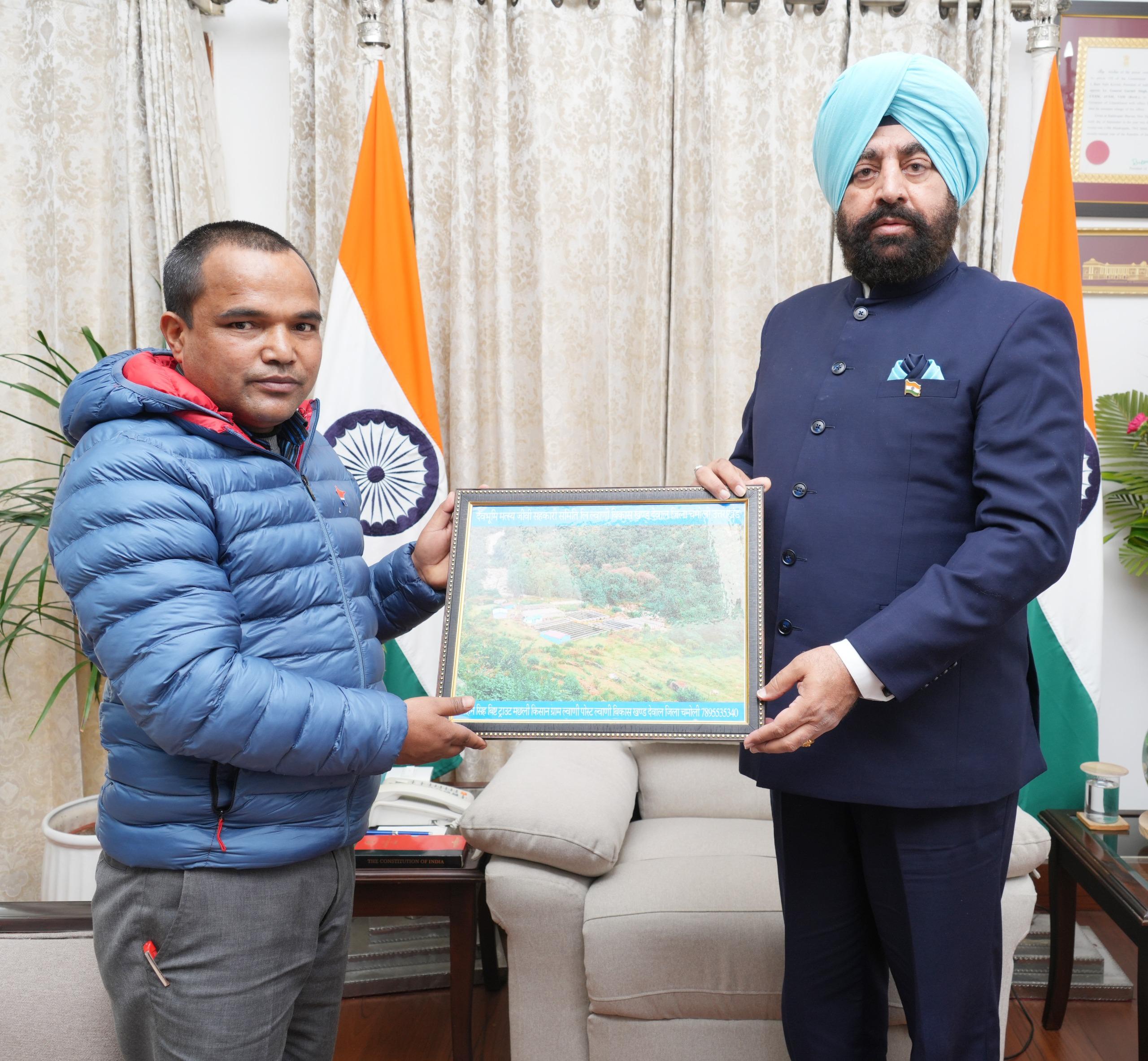 Bisht has been engaged in trout fish farming in Development Block Dewal since 2017. Through his initiative, he is providing self-employment opportunities to the local residents, particularly the youth. He informed the Governor that there is strong market demand for trout and that the fish produced by him is being supplied to the ITBP and SSB. He added that fish farming has been providing him with a good income and sought support to establish integrated farming in his village.