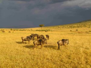 Countless wildebeest during sunset at Masai