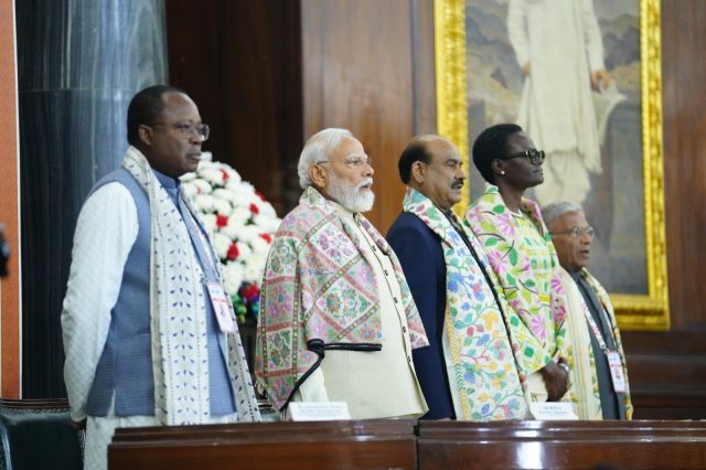 Calling India the “Mother of Democracy,” Modi cited historical examples of participatory governance, including references in the Vedas, ancient village assemblies, the Buddhist Sangha’s tradition of structured discussions, and a 10th-century Tamil Nadu inscription describing democratic village administration.