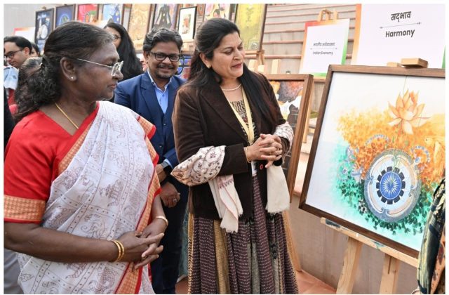 On this occasion, the President honoured 15 outstanding women artists, stating, “By 2047, India will once again be called the Golden Bird. These artworks reflect a bright vision of the nation’s future.”