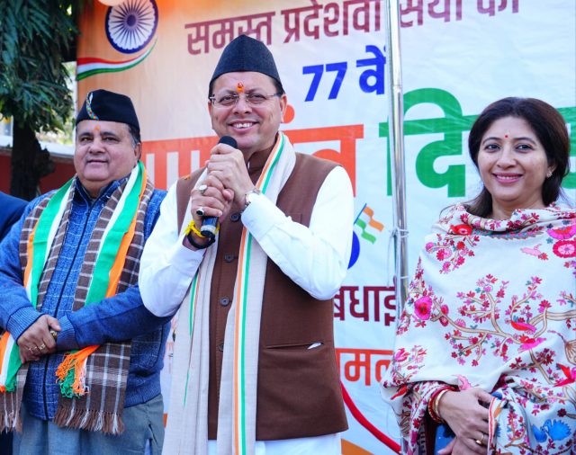 The 77th Republic Day celebrations took place at the party state office on Balbir Road amid party office-bearers and senior workers. On this occasion, CM Dhami and State President Bhatt unfurled the National Flag and congratulated the party workers and the state residents. In his address, Dhami said the country is paying tribute today to the countless people who had sacrificed their lives for the independence of India. He also remembered and offered floral tributes to the statehood activists who gave their everything for the sake of a separate Uttarakhand. Dhami noted that when independence was achieved, the world doubted the republic’s future in diverse India, but it endured through citizens’ loyalty, diligence and dedicated contributions. It is now fortifying further under Prime Minister Modi’s leadership, he remarked.