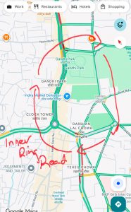 - Inner Ring Road: Dehradun needs an inner ring road, where traffic moves without any crossings and traffic lights. It can easily be made by simply making some roads around the Clock Tower one way. As shown in the diagram below, the road between Darshan Lal Chowk to Clock Tower becomes one way towards Clock Tower, with the traffic splitting between those wishing to go towards Chakrata Road and those who would go towards Astley Hall. The entire traffic from Chakrata Road turns towards Astley Hall. From Kwality Chowk to Kanak Chowk to Lansdowne Chowk and then Buddha Chowk and back to Darshan Lal Chowk are all one way, as shown in the diagram.