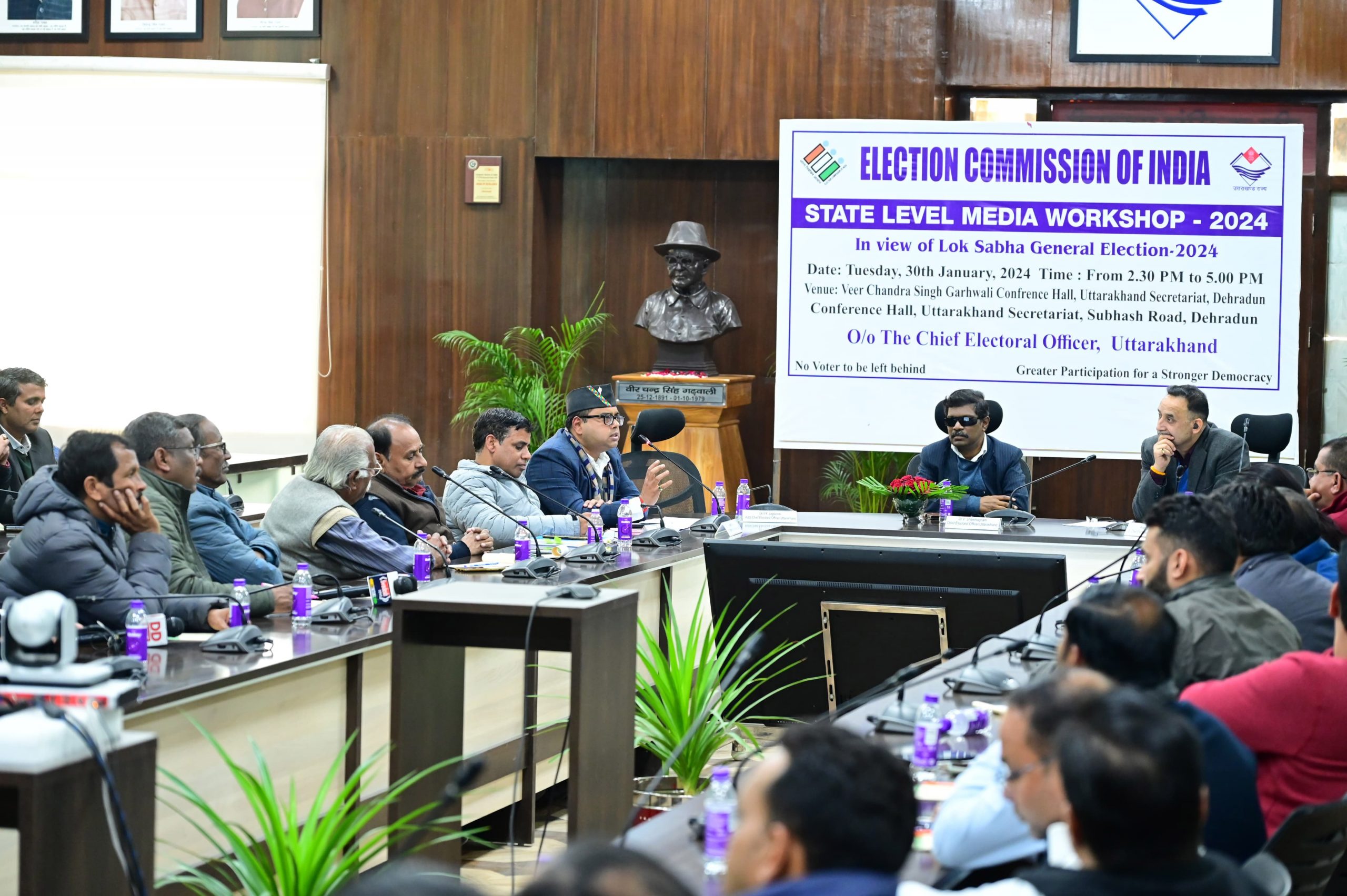 Dehradun, 30 Jan: A State Level Media Workshop 2024 was organised at the Secretariat under the chairmanship of Chief Electoral Officer and senior IAS officer V Shanmugam here today.