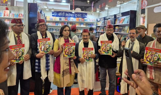 Dehradun, 5 Feb: “Navodit Pravah: Varshik Pahal-2025”, published from Dehradun, was released by eminent writers at the World Book Fair, Pragati Maidan, New Delhi. The chairperson of the event was the well-known lyricist and editor of ‘Sahitya Amrit’ magazine, Dr Laxmi Shankar Vajpayee. Poet-critic Dr Om Nischal, lyricist Naresh Shandilya, Anil Meet, Shashikant, Director, Sarva Bhasha Trust, Keshav Mohan Pandey expressed their views as the keynote speakers. Dr Renu Pant welcomed all the guests in the traditional way by presenting them shawls and Uttarakhandi caps.