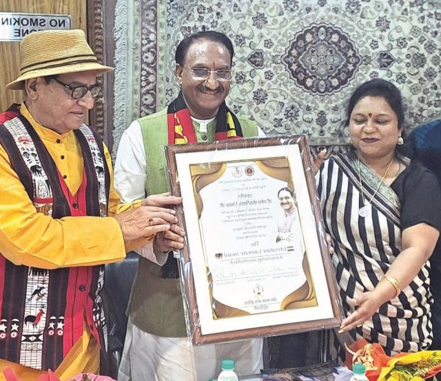 New Delhi, 29 Apr: Former Chief Minister of Uttarakhand and former Union Minister Dr Ramesh Pokhriyal ‘Nishank’ has been honoured with “The Literature Laureate” Award by the All India Sarva Bhasha Sanskriti Coordination Committee and the Global Hindishala Institute (VHSS Germany). The recognition honours his contributions to literature, the promotion of Hindi and Sanskrit, and his pioneering work in realising the concept of Lekhak Gaon.