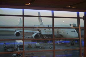 So, we took off at 5 something in the morning from Mumbai and were a bit sleepy. Luckily we had been on the Middle East route a ‘thousand times’ (exaggeration) and so we promptly put on our eye patches on and got our 40 winks for 2 hours. At Abu Dhabi it was like a normal morning. We were wide awake now.