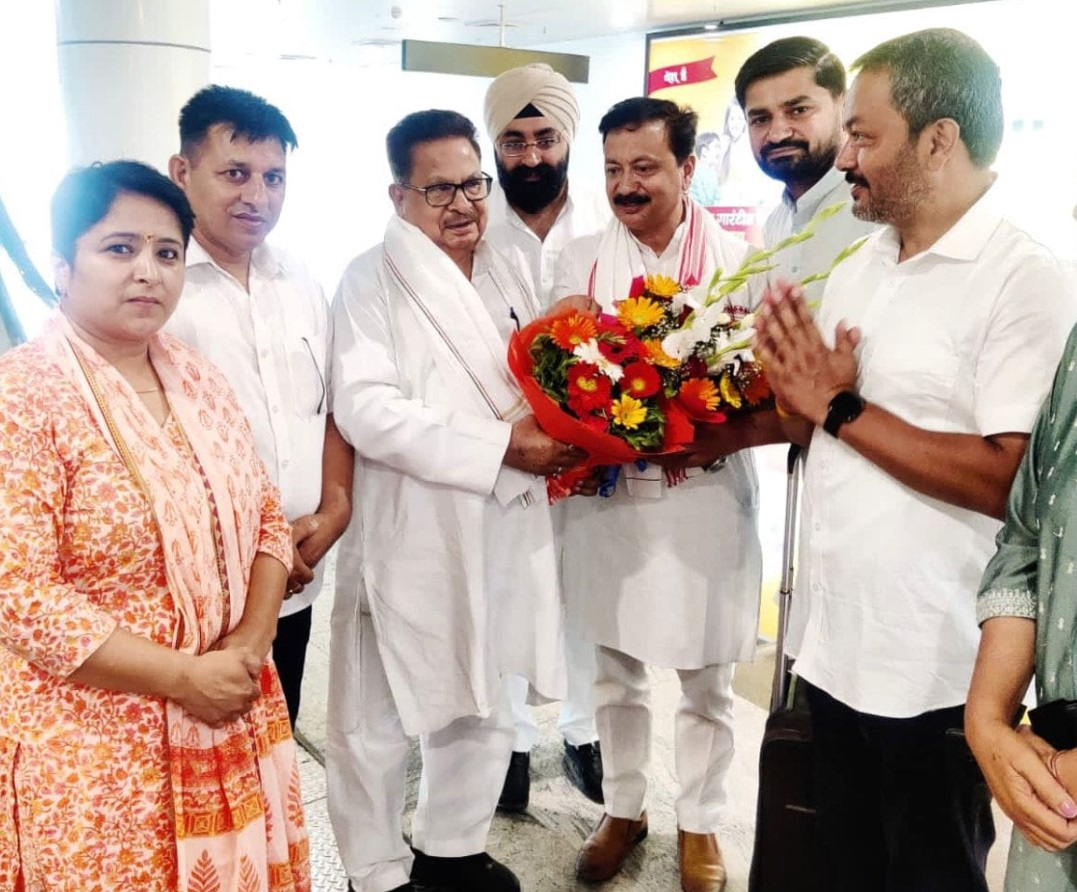Dehradun, 18 Jul: On the arrival of former MP and member of the Fact-Finding Committee of the All India Congress Committee for Lok Sabha elections, PL Punia at the State Congress Headquarters here, today, he was welcomed by the State Congress President Karan Mahara. Earlier, he was welcomed on arrival at Jolly Grant Airport.