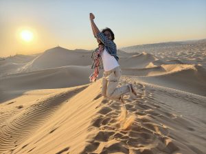 Richa took off her shoes to feel the Earth with her feet. This is something I have seen many do in deserts and it is believed to increase your connection to the planet at some deep spiritual level (warning – if you do the same in a forest, it will increase your connection to creepy crawlies). But here in this famed portion of the Arabian Desert, I also felt connected to the larger reality that exists outside my own ambitions, achievements and failures. Of course, I went back quickly to the ‘real world’ the next day (actually a few days later) but for a brief moment, I was someone else, living in some other context. That is what travel does – it removes your identity pressures & labels and you are free again as you were meant to be.
