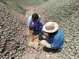 This is one of the reasons why I was so excited to visit the Middle Awash where the fossil of ‘Lucy’ was found. Lucy is easily the most famous hominid fossil in the world. ‘She’ (we don’t really know the gender for sure) was found in 1974 by celebrated paleoanthropologist Donald Johanson. The 3.7 foot Lucy fossil was dated to around 3.2 million years ago and that specific age made her very interesting as ‘she’ was considered to be the ‘missing link’ between apes and hominids, i.e., the early version of modern humans. One of the key distinctions made between ‘us’ and ‘them’ (ape and hominids, including Lucy) was bipedalism, or the ability to walk upright and Lucy seemed to be capable of, both, living in the trees and walking on the ground. This is because she yet retained the long arms (relative to height) for swinging from branch to branch and yet her opposable big toe on the foot was gone, which makes walking on 2 legs easier (but is not suited for a life only in the trees). Another defining ‘missing link’ feature was her brain size, which was larger than an ape’s but smaller than early hominid’s.