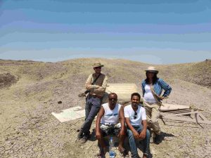 So, at the small Semera airport we met Efrem, who is the big boss of the tour company (and a good friend of Kiros) and he had arranged John to be our guide and Dave to be the driver of the brand new Toyota Land Cruiser, adorned in off-roading livery. John and Dave took us first to Hadar where we met Abdullah, who happened to be the local chief of the desert land there (and claimed that his father was part of Donald Johanson’s team that found Lucy). Without him, we were not allowed to access this remote Afar region and who were we to question someone backed by goons with guns? Abdullah was quite a character in his own right. He came in completely high at mid-day after chewing on the ‘chat’ leaves that many in this area are intoxicated on every day. And he just wouldn’t stop talking. John, Dave, Richa and I were mute for a long time, listening to Abdullah speaking in the local tongue which only John and Dave could follow. But as his chat high was fading, he later allowed us to speak as well. I realised that he really was a harmless soul, but just super excited to see foreigners interested in fossils (yes, we are weird).