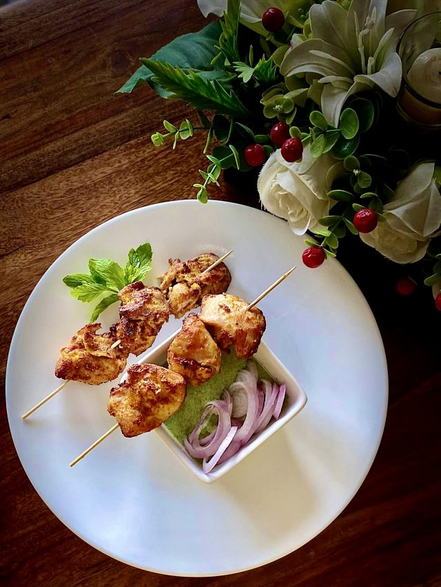 • Grill for 14 to 15 minutes until the chicken looks a bit charred from the edges and surface. (The internal temperature of the chicken should be 74 degree centigrade.)