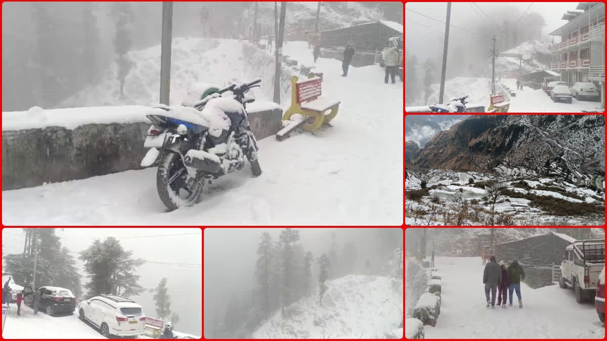 The hills of Jaunsar Bawar in Dehradun district also experienced good snowfall, presenting an enchanting view as the high hills of Chakrata are currently draped in snow. The news of snowfall attracted many tourists to the area. The warning issued by the Meteorological Department proved accurate, as the weather changed suddenly late last night in Uttarakhand. Light rain from the dark clouds overnight caused the temperature to drop. Snowfall in the Jaunsar region experienced another snowfall of the year, bringing hope of good crop and fruit yields to farmers engaged in farming and horticulture.
