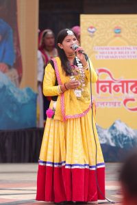 The event began with lighting of the ceremonial lamp by Ashish Kumar, Deputy Director, Directorate of Culture, Uttarakhand. The Veer Shiromani Maharana Pratap Tharu Uthan Samiti presented the devotional song, “Satyam Shivam Sundaram”, followed by the traditional Madi Holi dance of the Tharu community. The Surendra Rana Bauri Lokgeet Group from Jaunsar performed the rhythmic Tandi folk songs and dances. Artists from Mohan Pandey Aanchal Kala Kendra, Haldwani, performed the lively Chanchari dance to the popular Kumaoni song “Hit Kaushali Meri Gadi Mein”.