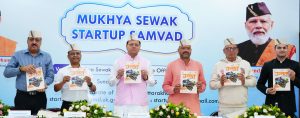 Dehradun, 27 Apr: Chief Minister Pushkar Singh Dhami participated in the Startup Dialogue organised under the Mukhya Sevak Samvaad at the Mukhya Sevak Sadan, here, today. During the programme, he interacted with individuals promoting startups across the state and listened to their suggestions. On this occasion, the Chief Minister also released the book, “Unnat Uttarakhand”, and visited various stalls showcasing different startups.