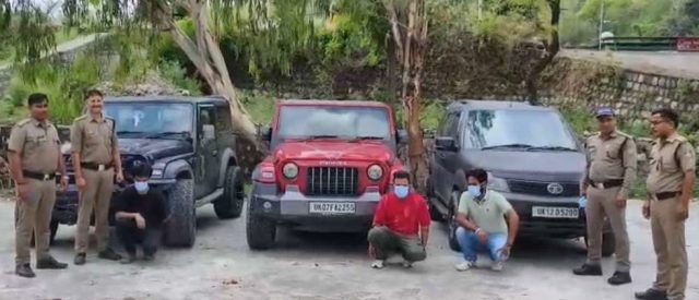 The drivers involved are Amit Garg from Rajpur Road, Ritik from IDPL Colony, Rishikesh, and Mehul Verma from Natthanpur, Nehru Colony. The seized vehicles include a red Thar, a black Safari, and a black Thar.