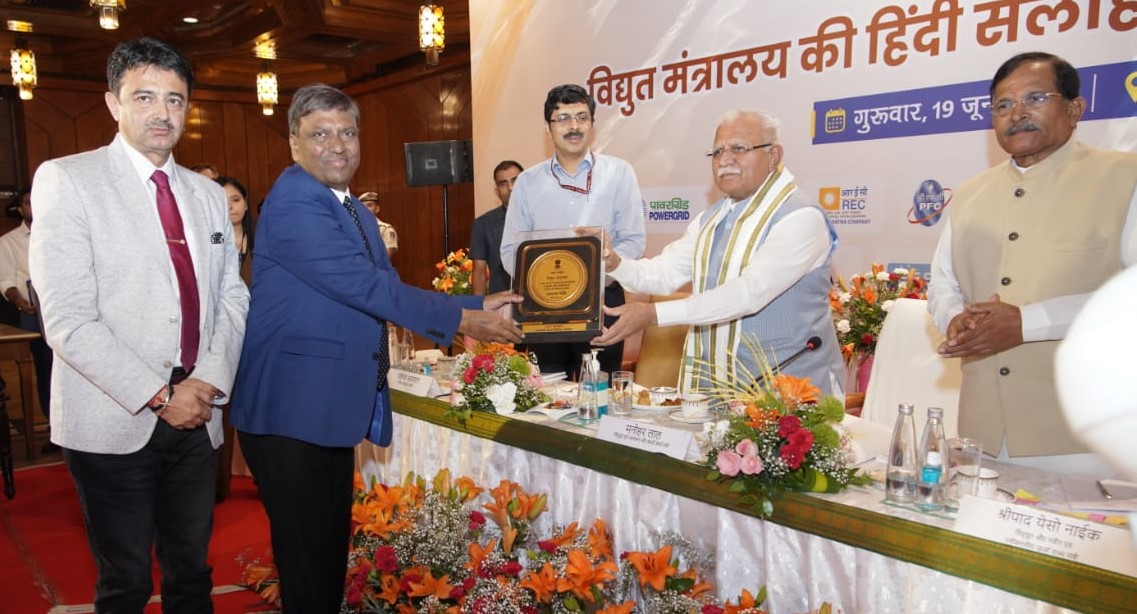 Rishikesh, 19 Jun: THDC India Limited, a Mini Ratna Public Sector Undertaking, was conferred the prestigious ‘Rajbhasha Jyoti Shield’ during the meeting of the Hindi Advisory Committee of the Ministry of Power, Government of India. The award was presented by Union Minister of Power and Housing & Urban Affairs, Manohar Lal. RK Vishnoi, Chairman and Managing Director, THDC India Limited, along with Shallinder Singh, Director (Personnel), received the award on behalf of THDC India Limited.