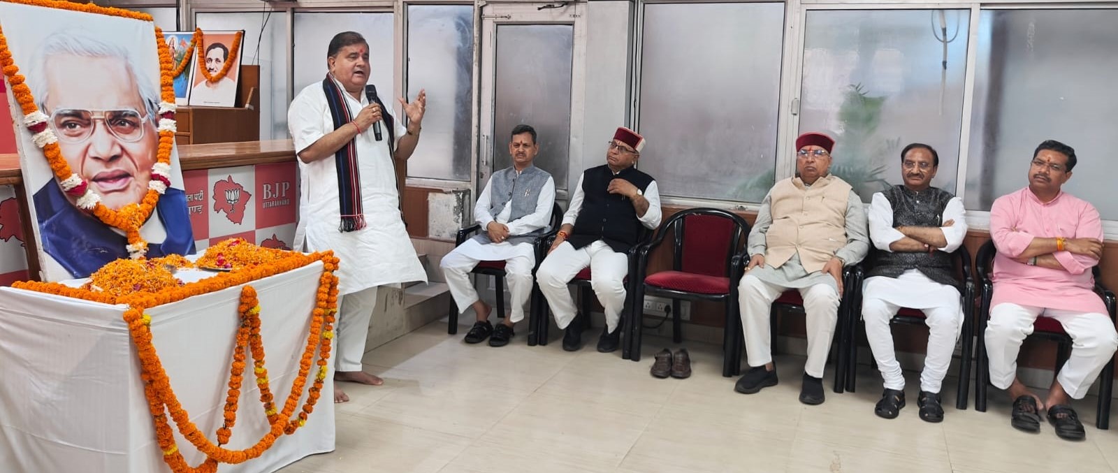 Addressing the gathering, Mahendra Bhatt, on behalf of the party workers and the people of Uttarakhand, paid rich tributes to Vajpayee. He stated that though the statehood movement had been ongoing for a long time, it was Vajpayee who, during a public meeting in Dehradun, had assured the people that his government would form Uttarakhand, and the entire state placed complete trust in his promise. True to his words, Vajpayee fulfilled the commitment despite adverse circumstances and the absence of a majority. Every worker and resident of the state will remain eternally grateful for his priceless contribution. As Prime Minister, Vajpayee consistently prioritised the development of Uttarakhand, provided an industrial package, and ensured that the Pradhan Mantri Gram Sadak Yojana benefitted even the most remote hill villages. Bhatt called upon all workers to imbibe Vajpayee’s ideals and life lessons in their political and social conduct.