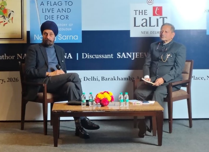 The session subsequently moved onto Dr Sarna’s second book, A Flag to Live and Die For, which traces the historical evolution of the Indian tricolour. He discussed the symbolic role of flags in political movements and nation building, explaining how early nationalist efforts experimented with multiple designs before converging on the present form. The discussion examined the influence of global practices, the incorporation of the charkha during the freedom movement, and later refinements that produced the final tricolour. Dr Sarna emphasised how the flag evolved from a symbol of resistance to one of sovereignty and collective identity, accompanied by formal codes of respect and usage.