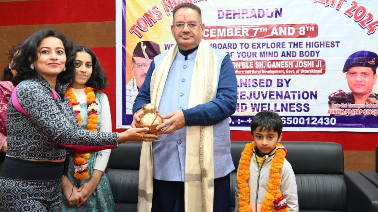 Dehradun, 8 Dec: Cabinet Minister Ganesh Joshi participated as the Chief Guest at the two-day Tons Himalayan Yoga Retreat 2024, held on Saturday at the Sub Area Auditorium in Garhi Cantt. The event began with lighting of the ceremonial lamp.