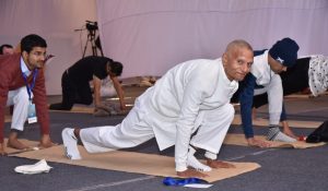 The events of the Yoga Mahotsav began this morning ahead of the formal inauguration. First, yoga camps were organised for the seekers in the presence of instructors from six renowned yoga institutes, Isha Foundation, Art of Living, Ramamani Iyengar Smriti Yoga Institute, Kaivalyadhama, Krishnamacharya Yoga Mandiram and Sivananda Yoga School. Thereafter, Art of Living organised a meditation session. Art of Living organised a special yoga session for people suffering from diabetes.